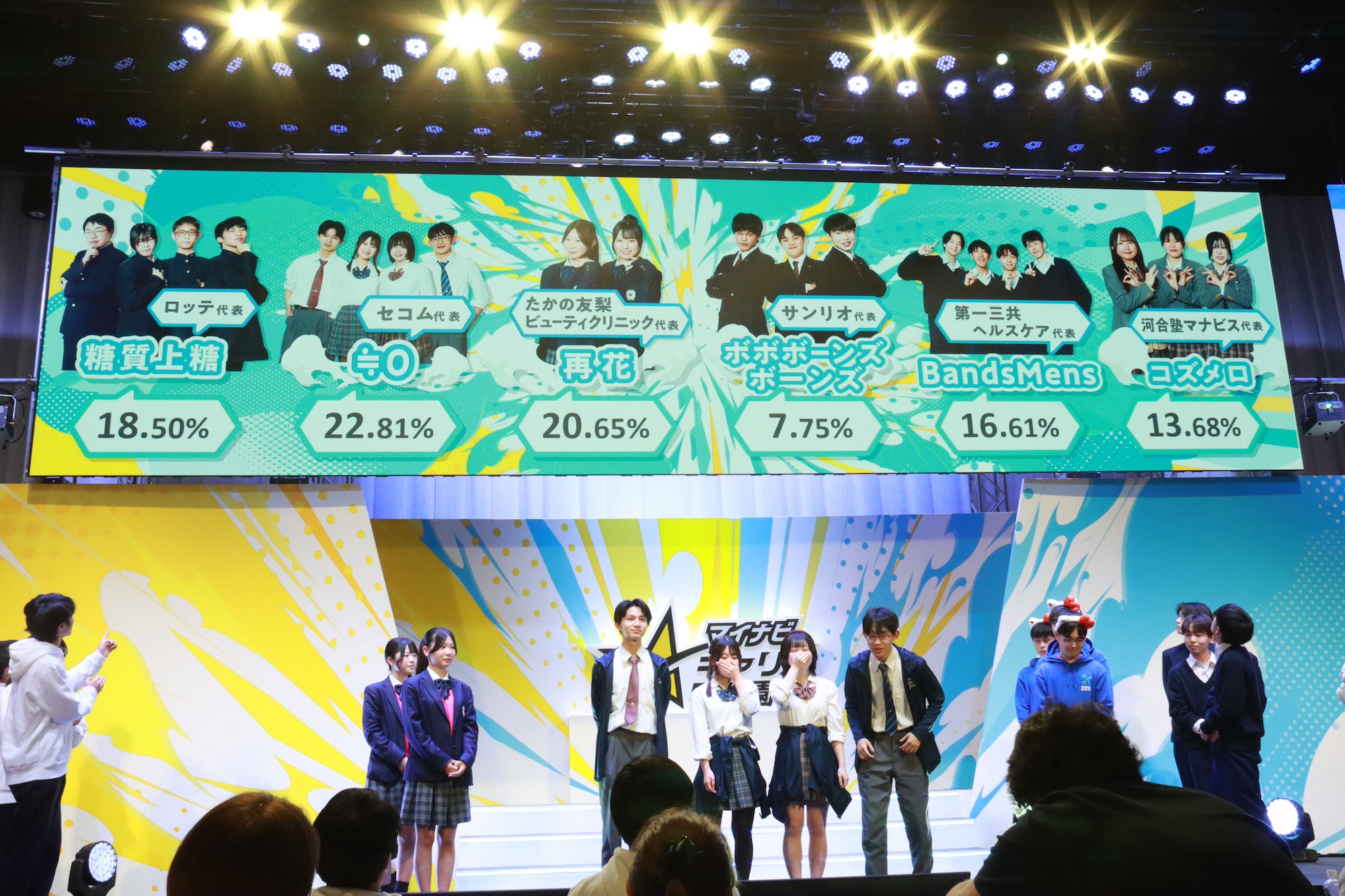 決勝大会2日目の「Innovation部門」には、サンリオ・セコム・第一三共ヘルスケア・たかの友梨ビューティクリニック・ロッテ・河合塾マナビスの6企業がテーマ協賛企業として参加。