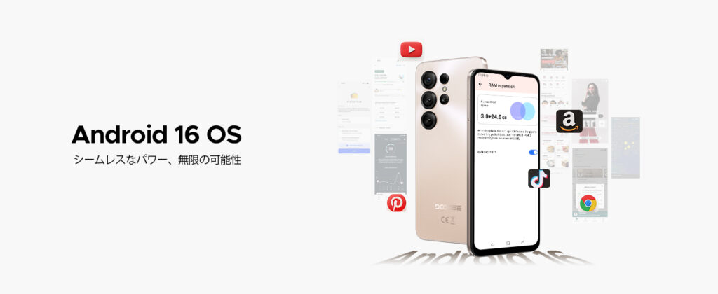 このモデルは、最新のAndroid 16 を搭載し、シリーズ共通の6150mAh超大容量バッテリーと6.56インチの大画面を継承。一方で、「UNISOC SC9863A プロセッサ」と「24GBメモリ」 というバランスの取れたスペックにより、SNS、動画視聴、ウェブブラウジングなどの日常的な使用に徹底最適化された、非常に手頃な価格のスマートフォンを実現!