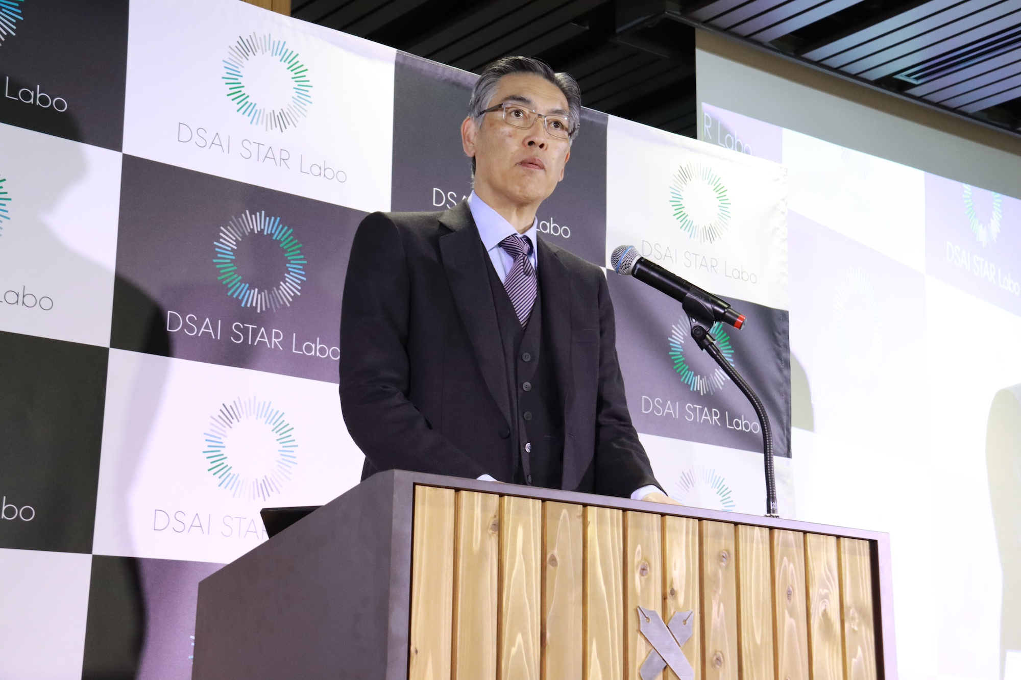 続けて、データセクション株式会社 代表取締役社長執行役員CEOの石原紀彦氏が登壇し、同社の説明や今回発足した「DSAI STAR Labo」について説明を行った。