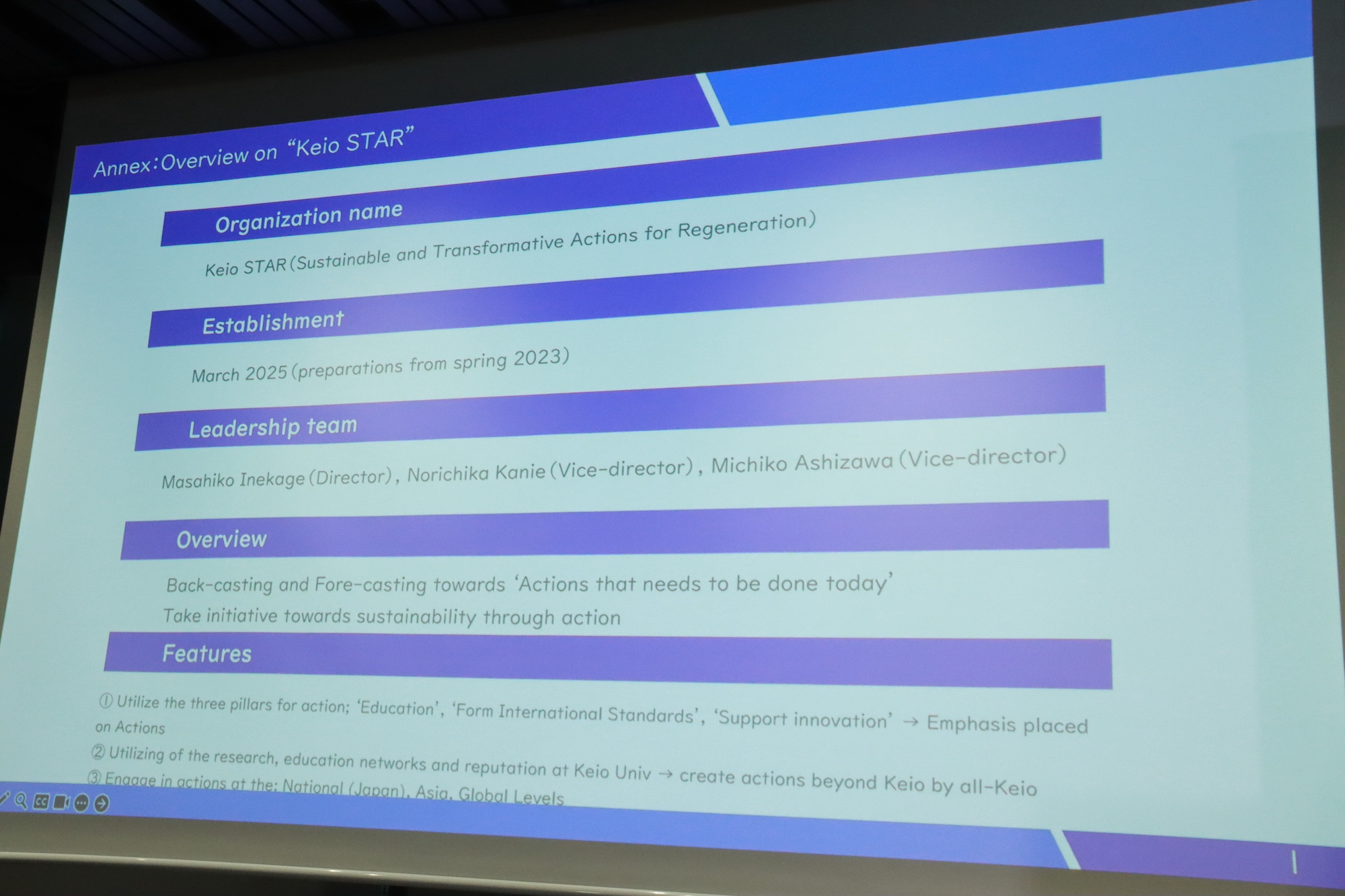 「私たちの目的は未来を見据え、バックキャスティングとフォアキャスティングを通じて行動に向けて進むことです。」