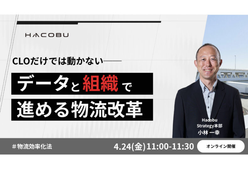 データの力で物流課題を解決する株式会社Hacobuは、2026年4月24日に「CLOだけでは動かない─データと組織で進める物流改革」と題したオンラインセミナーを開催することを発表した。