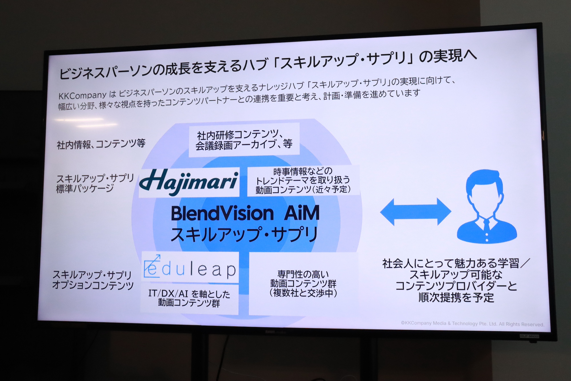 アジア太平洋圏に事業拠点を持つAIマルチメディアテクノロジーグループであるKKCompany Technologiesの日本法人であるKKCompany Japan合同会社は、同社が持つ動画技術とAI活用技術を融合させたマルチメディア対応AIプラットフォーム「BlendVision AiM(ブレンドビジョン・エイム)」に、社員向けの研修コンテンツを盛り込んだ新サービス「スキルアップ・サプリ」の提供を、1月28日より開始。