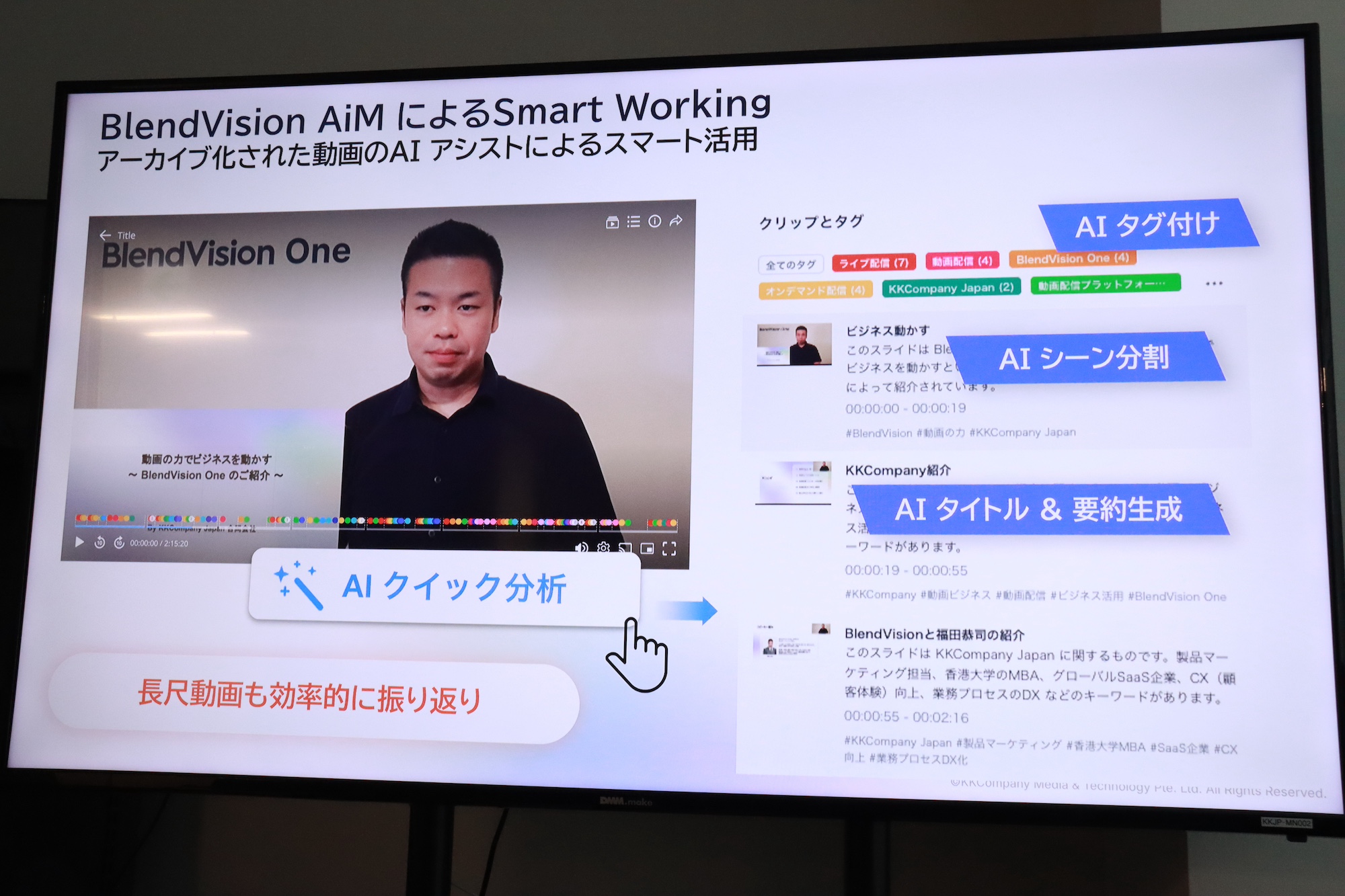 KKCompanyが展開するBlendVision AiMは、動画・文字情報によるあらゆる情報資産の効率的活用を可能とするマルチメディア対応のAIプラットフォーム。