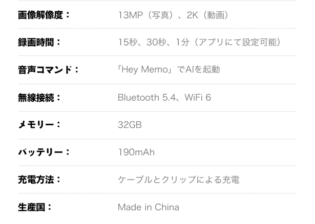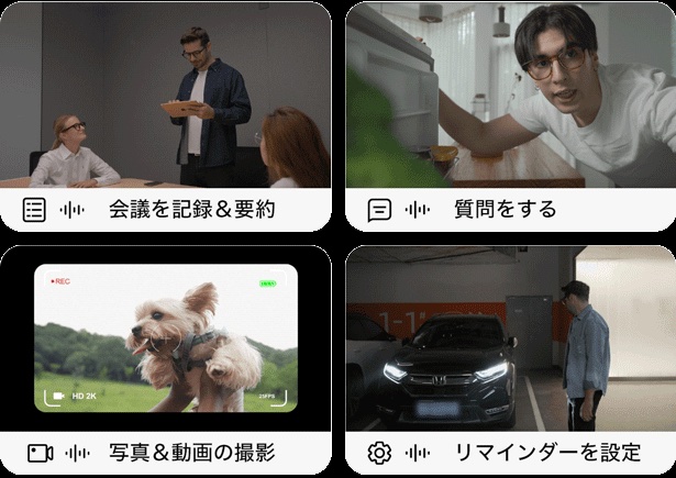 スマホを取り出す必要はなく、音声コマンド「Hey Memo」と声をかけるだけで通話・メモ・音楽再生などが可能。