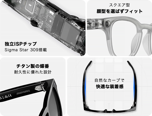 さらに、人間工学に基づいた快適な装着感と優れた耐久性を両立し、ビジネスからプライベートまで、日常を支える頼れる相棒として活躍してくれるスマートグラスだ。