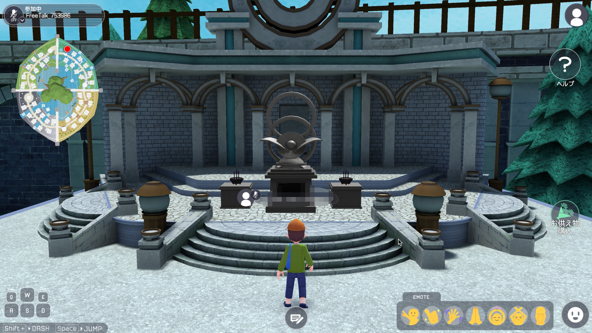 墓石に近づくと、お供え物購入ページに遷移するアイコンが表示され、NFT化された供物の購入が可能。