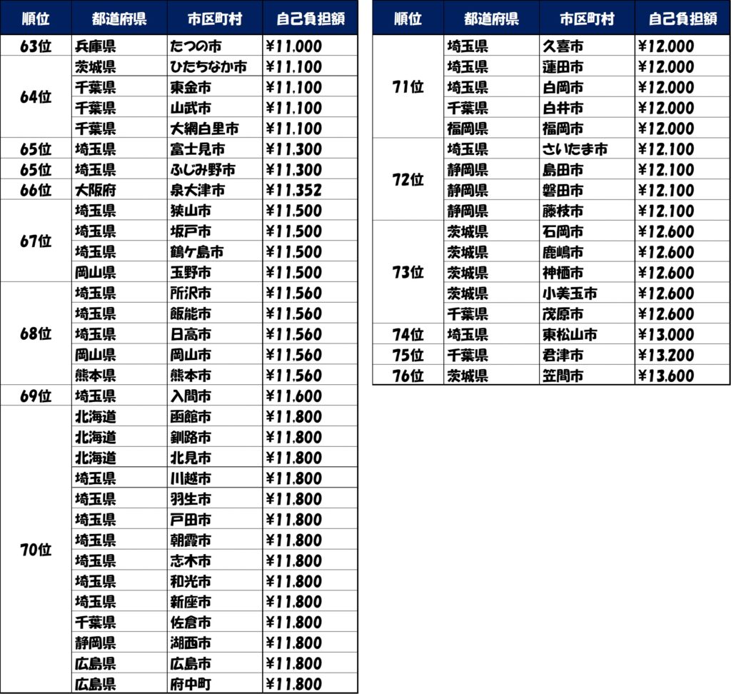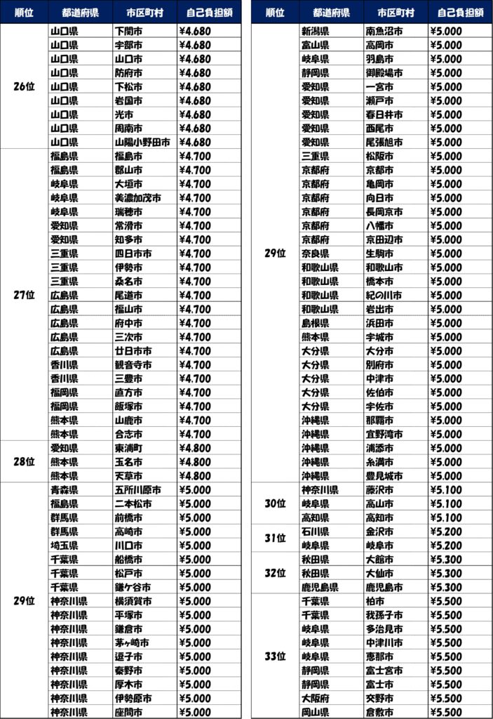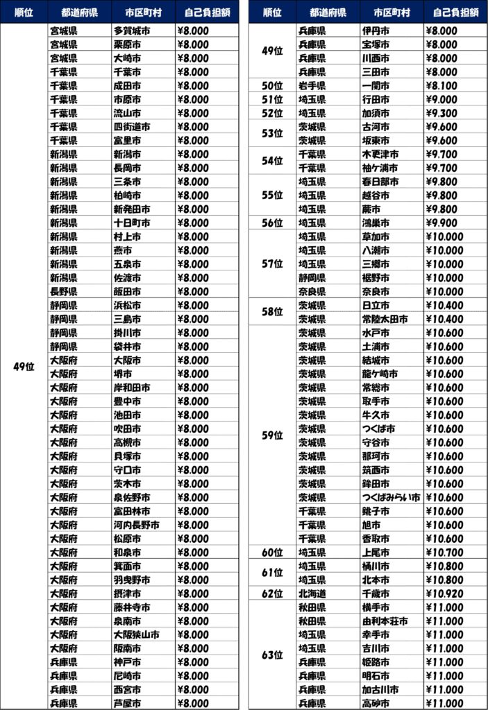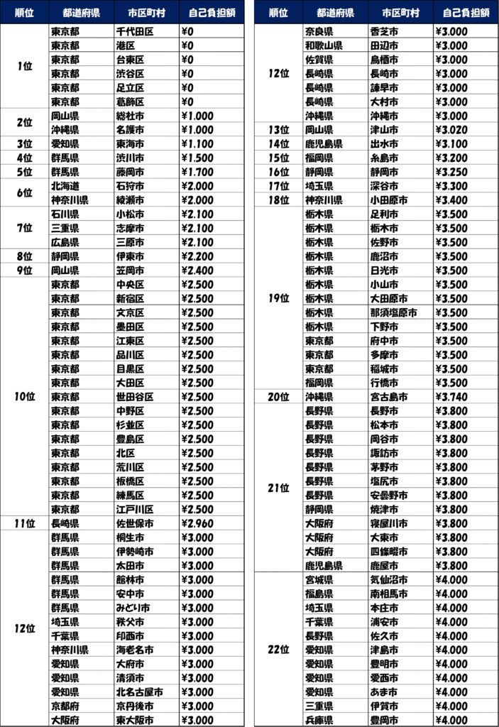 自治体別自己負担額ランキング