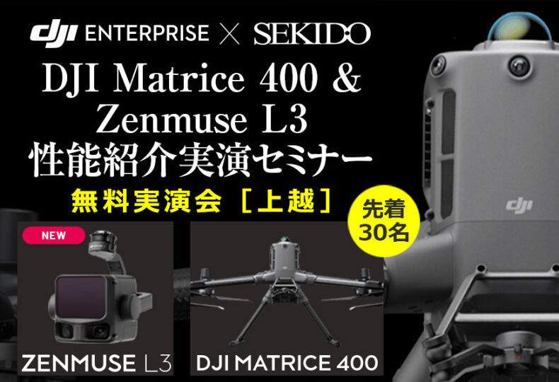 DJI(ディージェイアイ)正規販売代理店としてドローンビジネスの最前線を支える株式会社セキドは、セキド新潟上越(運営:株式会社フォト・オフィスオーツー、新潟県上越市)と共催で、2026年4月9日に新潟県上越市のドローントレーニングセンター セキド新潟上越で、ドローン測量のデモを行う「DJI Matrice 400 & Zenmuse L3 性能紹介実演セミナー」を開催する。