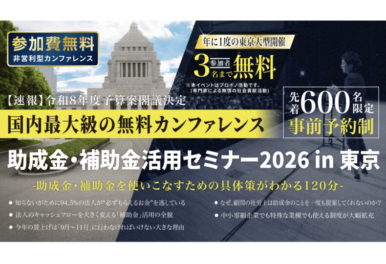 「助成金・補助金活用セミナー2026 in 東京」2026年6月10日に開催