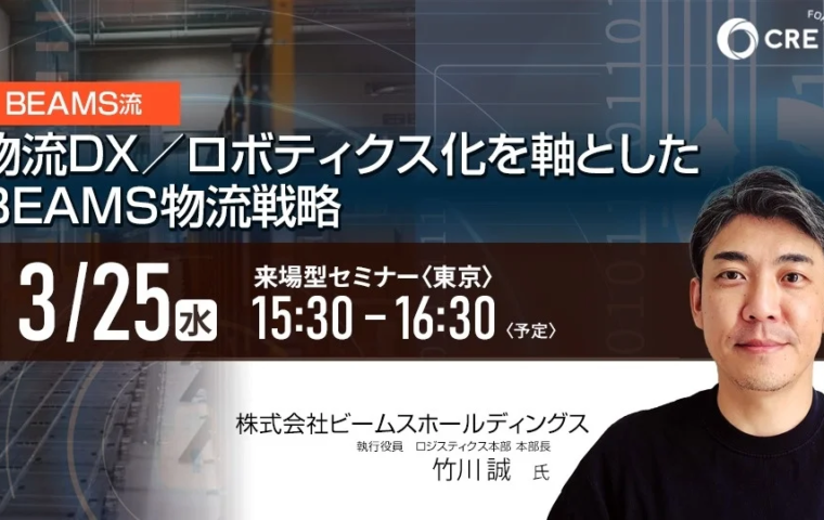 ビジネス シーアールイーが無料来場型セミナー「BEAMS流 物流DX/ロボティクス化を軸と... 株式会社シーアールイーは、2026年3月25日 15時30分〜16時30分、無料来場型セミナー「BEAMS流 物流DX/...