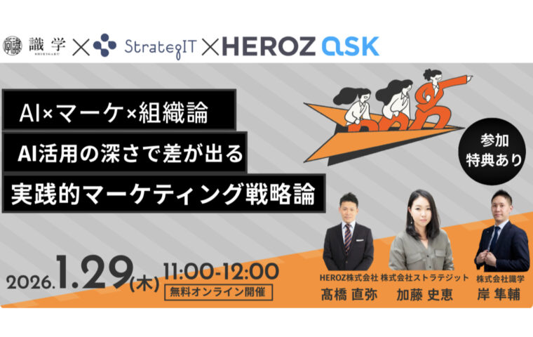 IT・テクノロジー 「ストラテジット」識学・HEROZと共催でAI×組織マネジメントをテーマにした無... 株式会社ストラテジットは、株式会社識学およびHEROZ株式会社と共催で、生成AIの業務活用と組織マネジメントの関係性をテ...