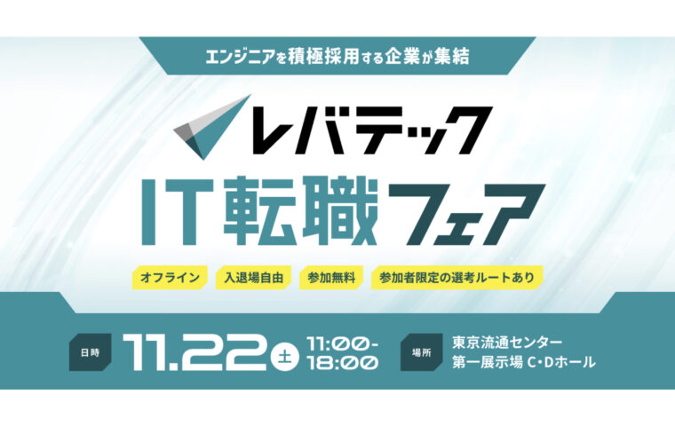 IT・テクノロジー ITエンジニア向けの転職イベント「レバテック IT転職フェア」11月22日開催 「日本を、IT先進国に。」をビジョンに掲げるレバテック株式会社は、2025年11月22日にITエンジニア向け転職イベント...