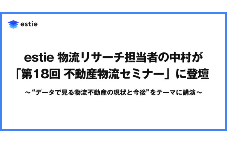 ビジネス estieが「第18回 物流不動産セミナー」で物流不動産の現状・今後についての講... 物流不動産の賃貸マーケット情報を収集できる、データ分析基盤「estie 物流リサーチ」を中心に複数のサービスを提供する株...