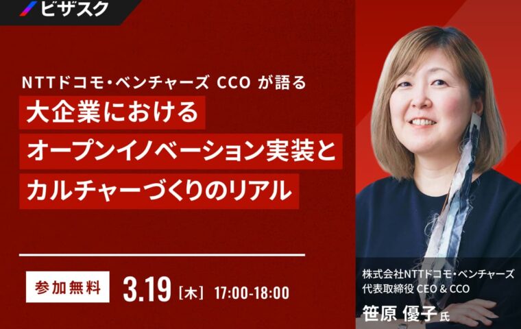 ビジネス ビザスクが「大企業におけるオープンイノベーション実装とカルチャーづくりのリアル」... 「知見と、挑戦をつなぐ」をミッションにグローバルなナレッジプラットフォームを運営する株式会社ビザスクは『大企業におけるオ...